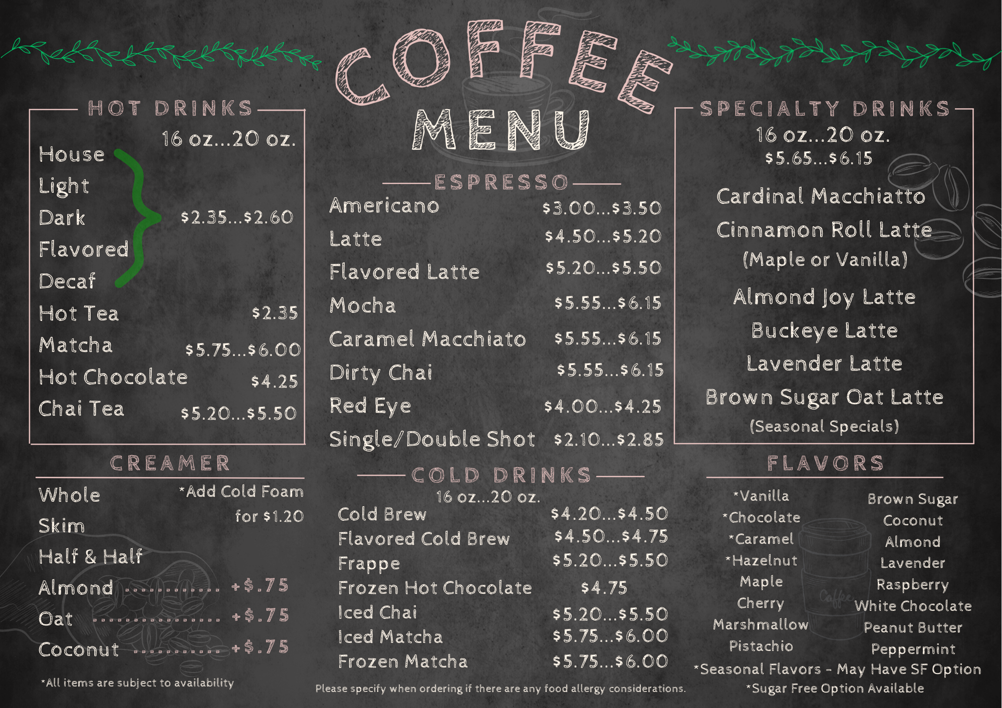 *All prices are subject to change. Inventory is based on availability, and some items may not be in stock at all times.